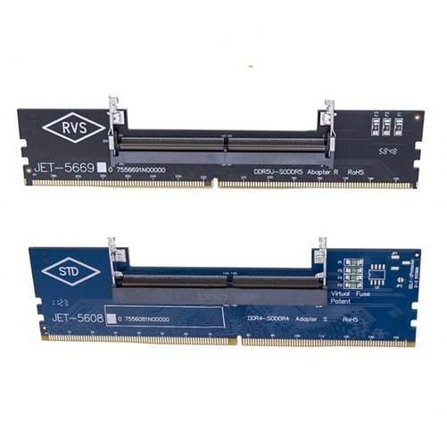 顾名思义,内存转接卡就是将笔记本形态的内存通过转接的方式在台式机上使用,听着是不是非常神奇,那岂不是能把DDR4的笔记本内存转接,当作DDR5内存使用了?当然不是,内存转接卡只能同代转接,也就是DDR4笔记本内存只能转接成DDR4台式机内存,DDR3和DDR5转接卡同理。